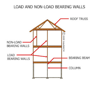 1. Load bearing wall: this carries its own weight and the weight of the materials put on it, e.g. roof and floor slab.